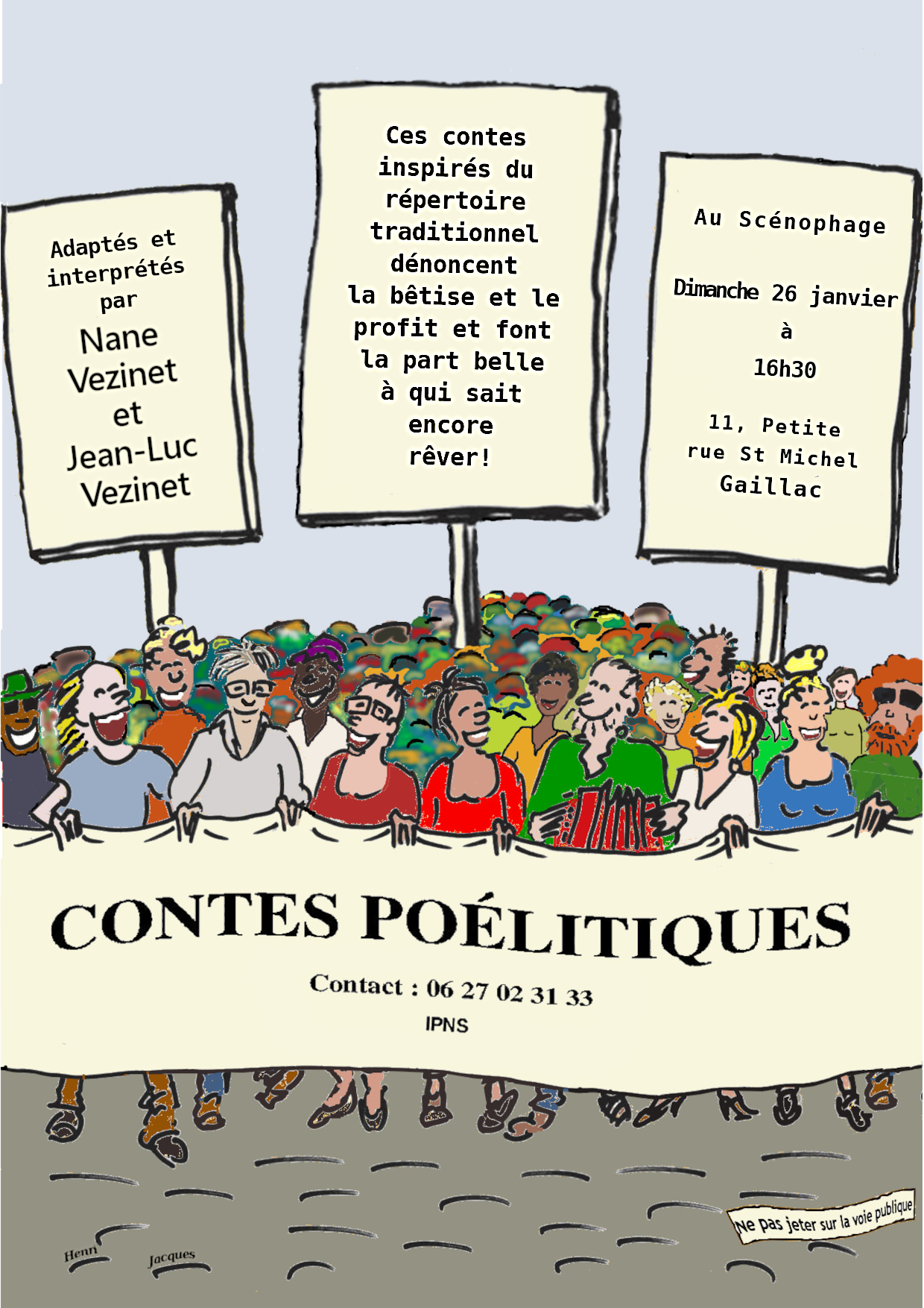 « Contes inspirés du répertoire traditionnel, qui dénoncent la bêtise et le profit, faisant la part belle à celles et ceux qui savent encore rêver et le clament haut et fort ! »