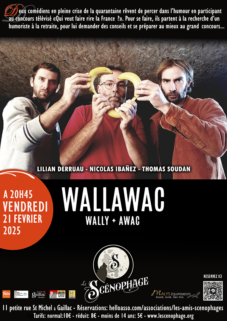 Deux comédiens en pleine crise de la quarantaine rêvent de percer dans l’humour en participant au concours télévisé « Qui veut faire rire la France ? ». Pour ce faire, ils partent à la recherche d’une ancienne vedette de l’humour, pour lui demander des conseils et de l’aide, afin d’être préparés au mieux pour le grand concours… Ce spectacle, c’est avant tout une histoire qui mêle la réalité à la fiction, abordant, l’air de rien, une réflexion sur l’humour, le théâtre, la société des concours, rien que ça… D’un côté, Thomas Soudan et Nicolas Ibañez, Artists Without A Cause, un duo de comédiens formés à l’école du théâtre, dont on a déjà accueilli Par delà Bien et Nul en 2019 ; de l’autre, Wally, alias Lilian Derruau, musicien autodidacte devenu chanteur drôle. Eux voudraient faire rire, lui en a de moins en moins envie… De cette rencontre de deux mondes jaillit un pur spectacle, comme une réflexion, une interrogation sur l’humour, sa place dans la société, comme marqueur social également.